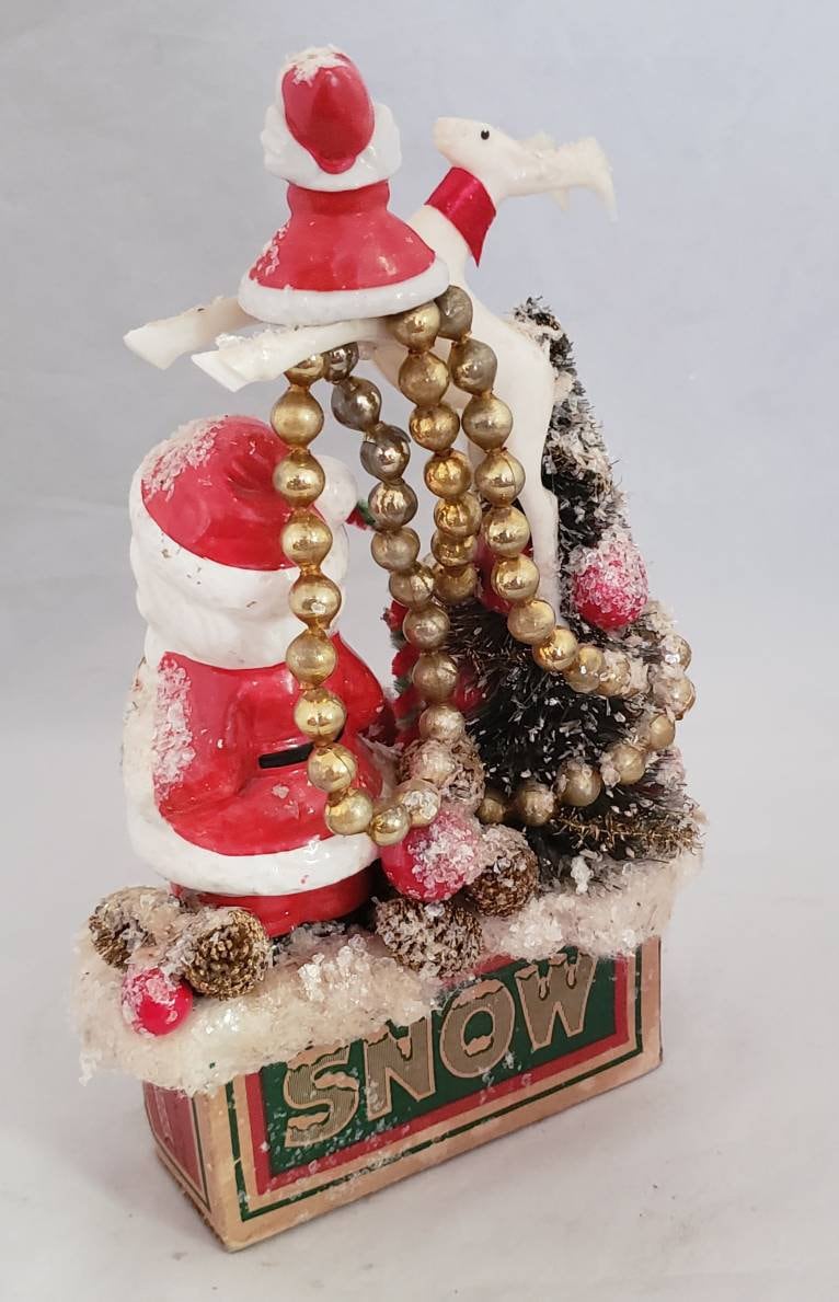 This assemblage is in half of a cardboard mica snow box that I was able to "save". ALL vintage/antique parts used.