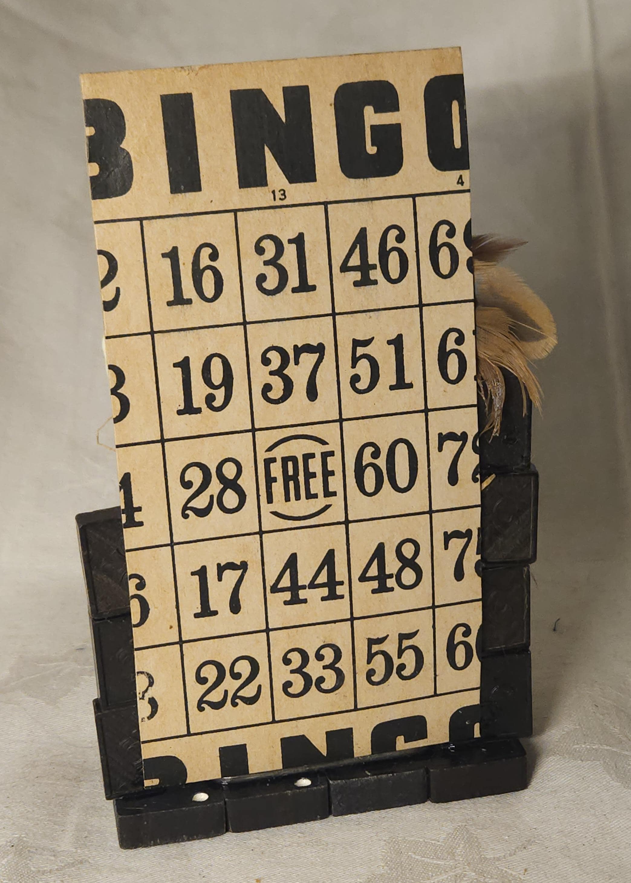 Adorned with natural elements including pinecones,for an autumn harvest feel. The base is vintage dominos.