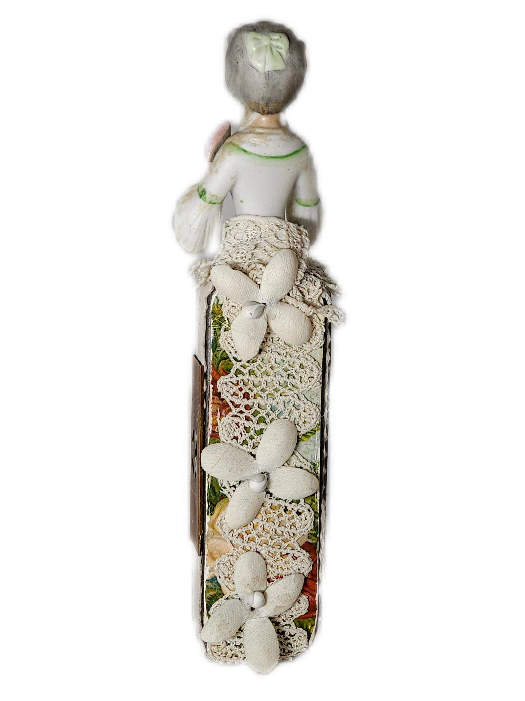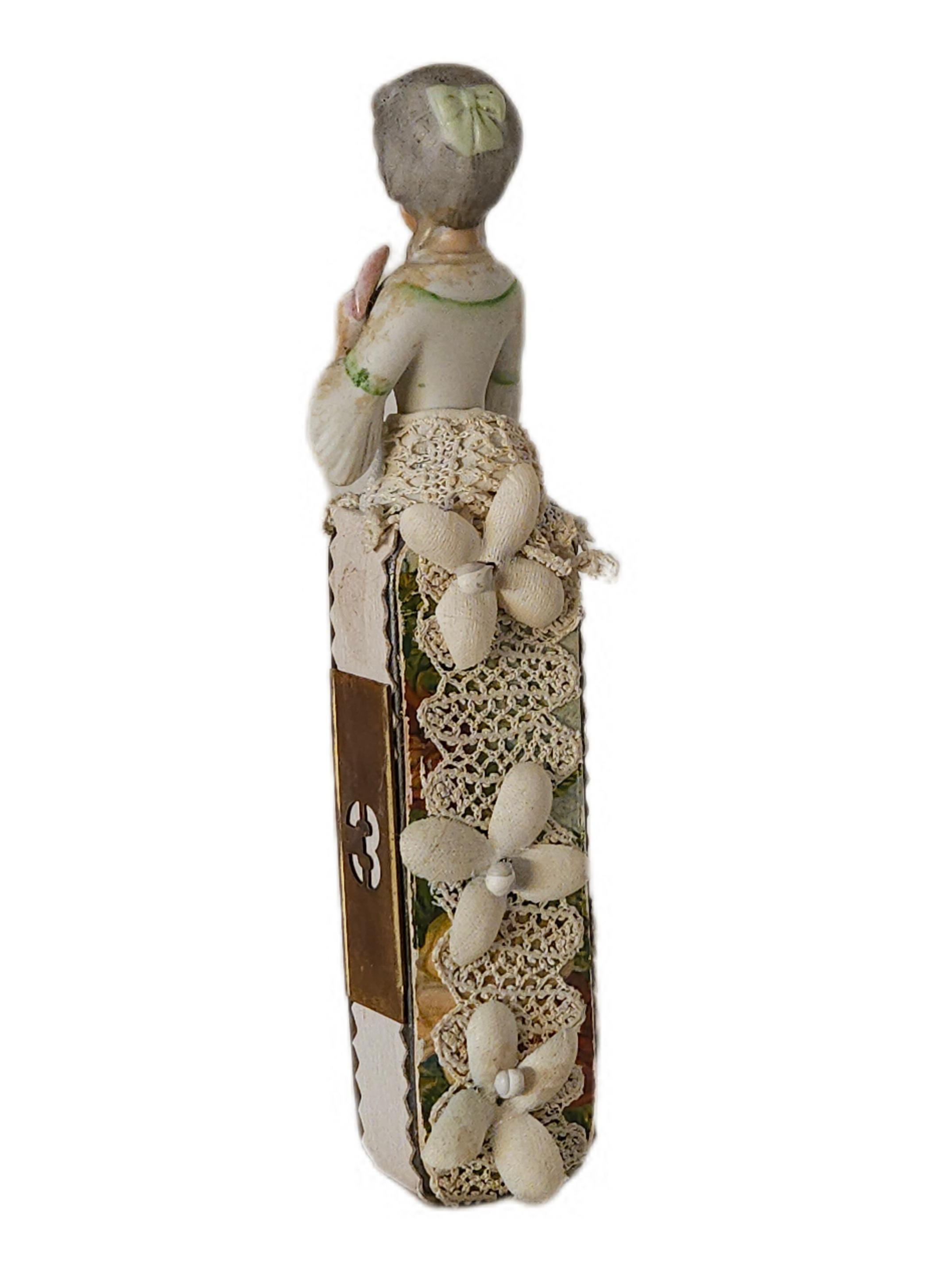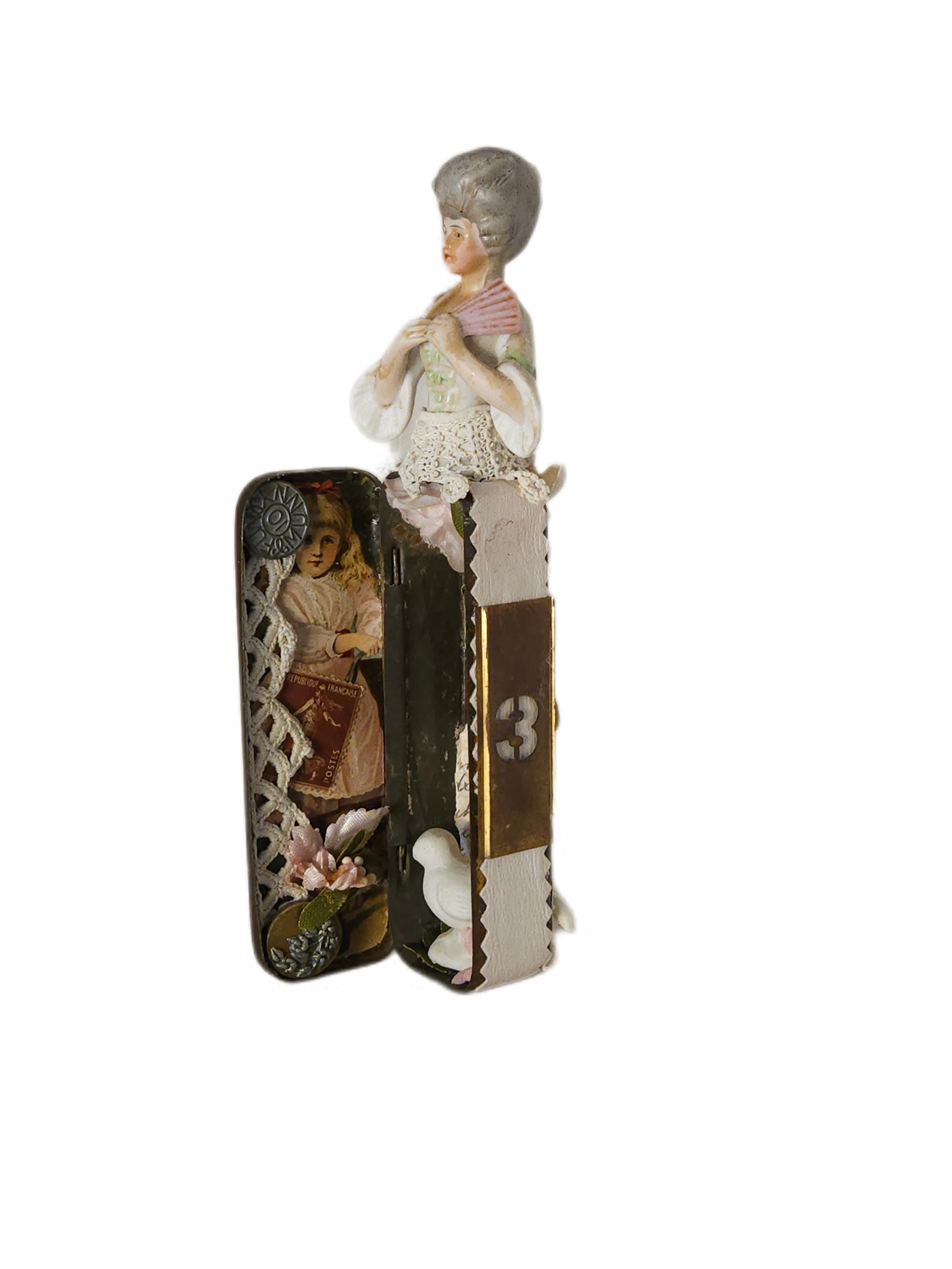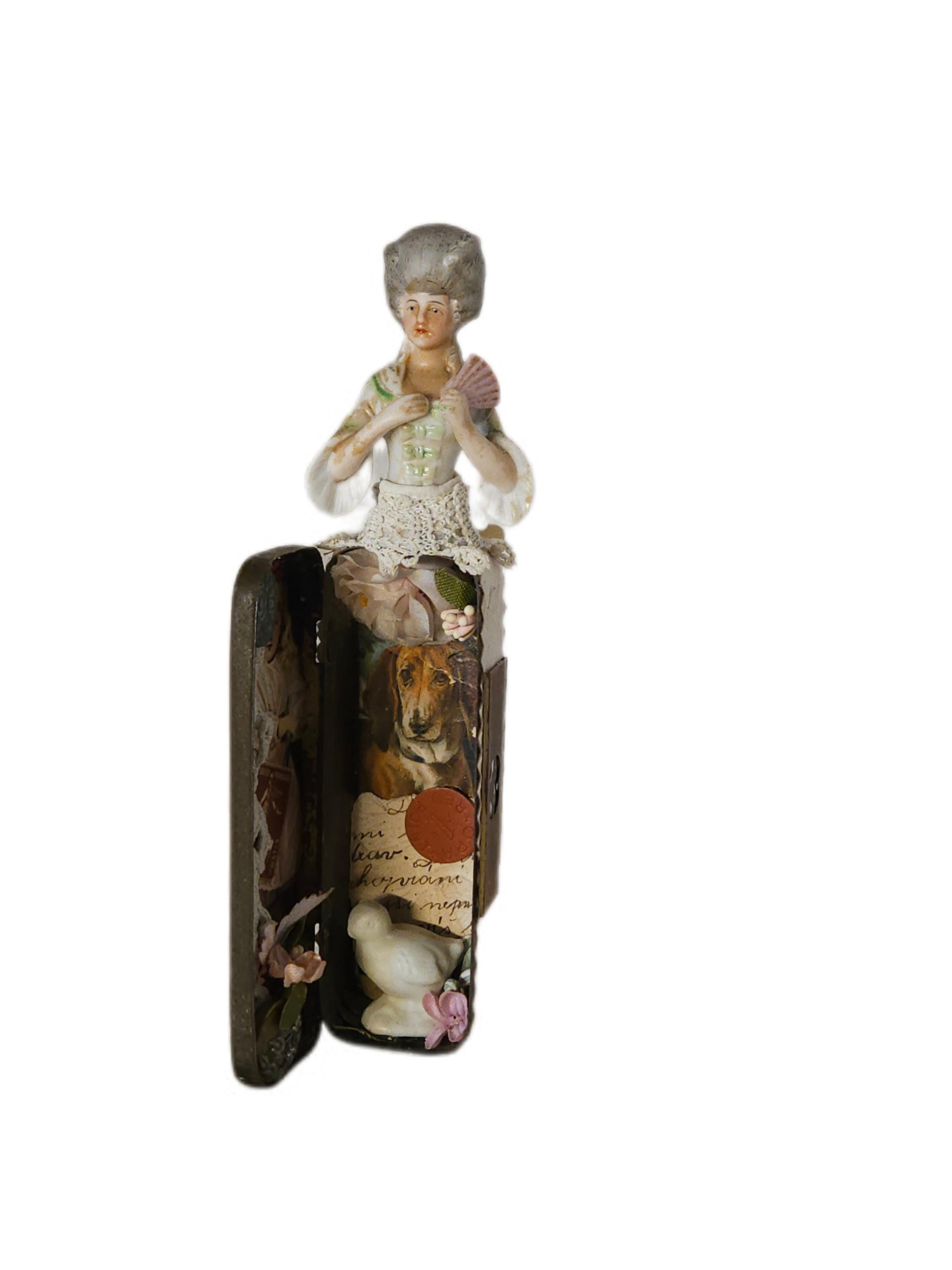 This versatile piece is ideal for collectors, art enthusiasts, or anyone looking to add a touch of femininity and Victorian allure to their space. It can be displayed on a shelf, used as a unique story box, or incorporated into a mixed media art collection.